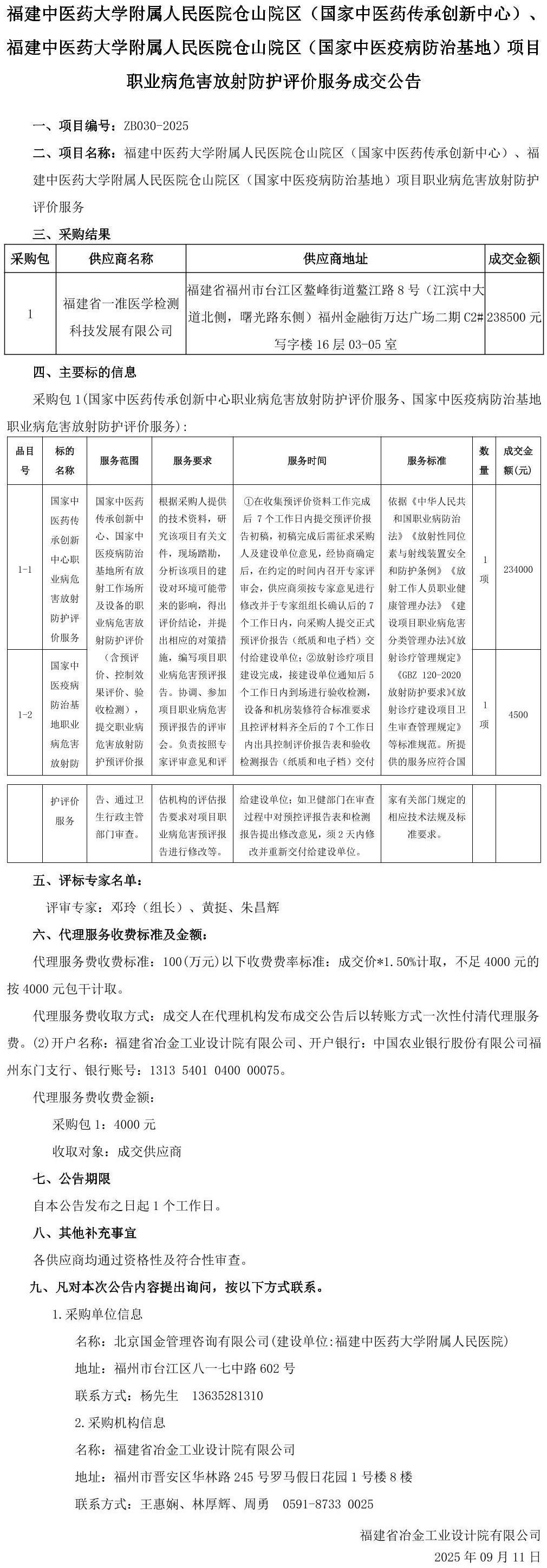 | 采购单位 | 北京国金管理咨询有限公司(建设单位:福建中医药大学附属人民医院) | 采购联系方式 | 杨先生 / 13635281310 |